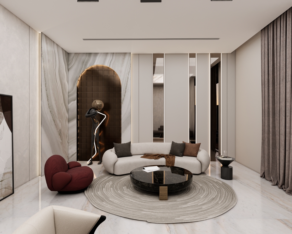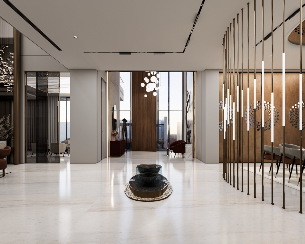 Anantam Residence, a 20,350 sq.ft. residence, exemplifies modern luxury by blending grandeur with refined minimalism. Interiors feature soaring volumes, rich stone finishes, and a monochrome palette accented with warm textures, creating a sophisticated and serene environment. Double-height living areas enhance scale and drama, while curated furniture, lighting, and detailing balance openness with intimacy. Every space is thoughtfully designed to merge contemporary elegance with classic materiality, resulting in an opulent yet livable home. Anantam Residence reflects ADeCon’s philosophy of timeless design-where comfort, style, and architectural refinement coexist, offering residents a residence that is both majestic and deeply personal.