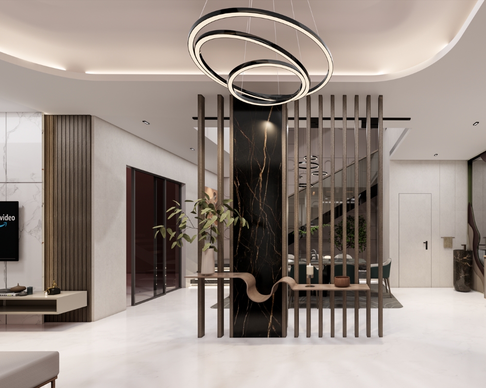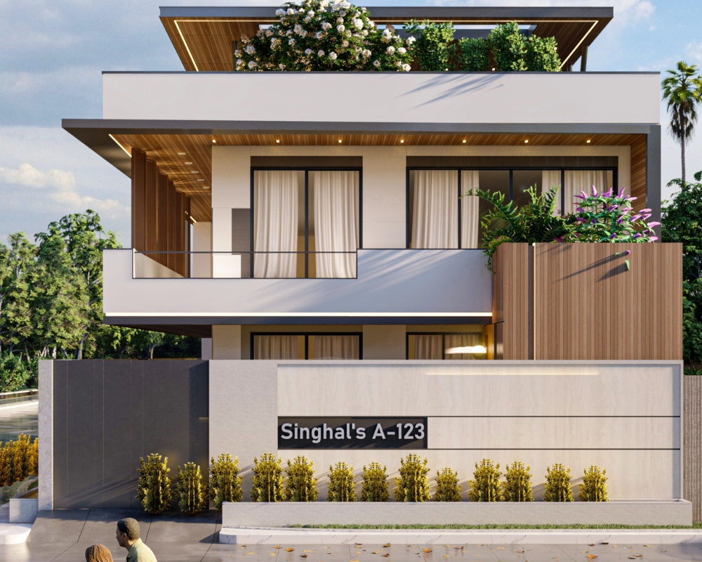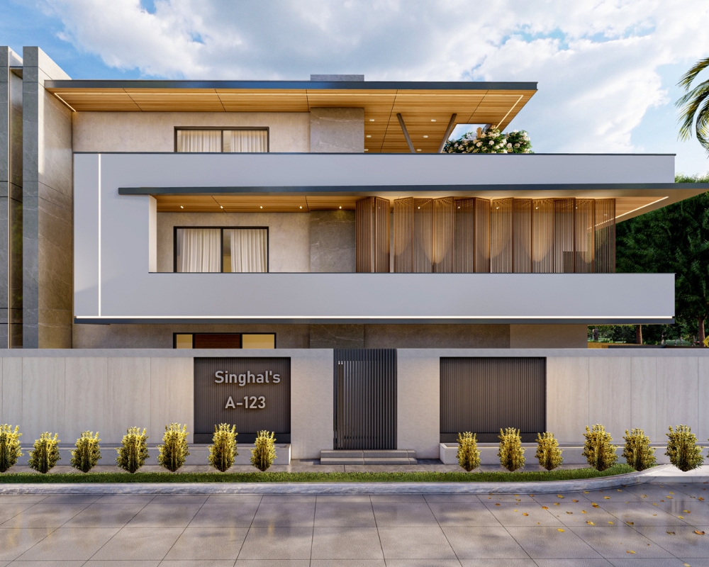 Bliss Abode, a 6,850 sq.ft. residence, sits proudly on a prominent corner plot, designed to maintain a seamless visual identity across two frontages. Its dual-facing façade is bold yet balanced, ensuring a refined and cohesive presence from every angle. Inside, the home embraces a modern-classical luxury theme, blending timeless elegance with contemporary functionality. Thoughtful spatial planning, large windows, and open circulation create bright, airy interiors that invite natural light and enhance livability. Bliss Abode is more than a residence-it is a statement of sophistication, where classic charm and modern comfort merge seamlessly into everyday living.