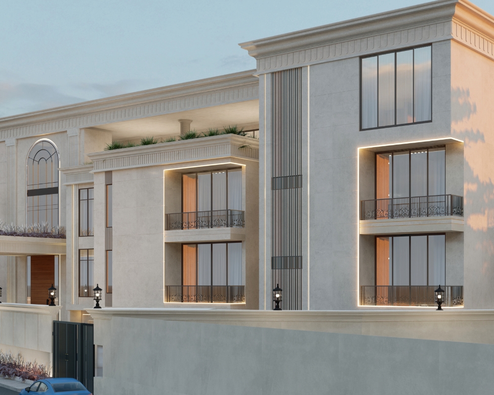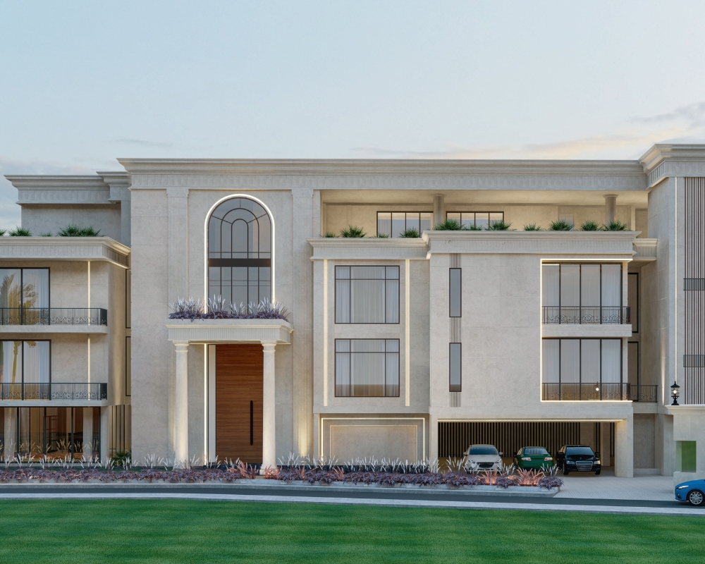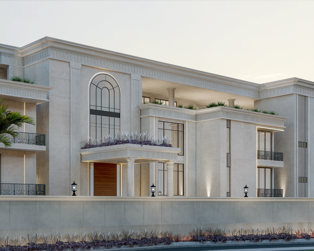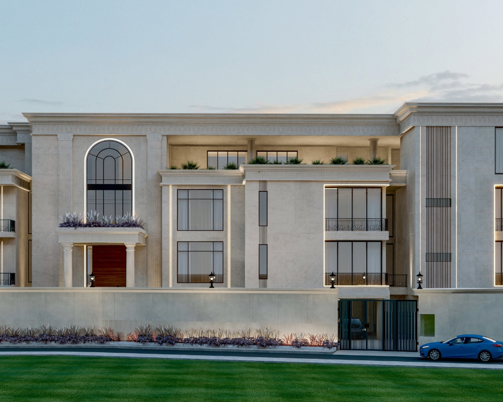 SCDC is a 26,000 sq.ft. stately villa, that blends the timeless elegance of Neo-classical architecture with the comforts of modern living. Spread across Ground + 2 floors, the residence showcases a symmetrical façade, graceful proportions, and a dignified material palette that reflects refined taste. The interiors are serene and light-filled, featuring curated finishes, soft tones, and a seamless balance of classical charm with contemporary luxury. Designed with eco-conscious principles, SCDC ensures sustainability without compromising comfort. It is a modern retreat that reinterprets tradition, offering a lifestyle rooted in sophistication, efficiency, and enduring beauty.